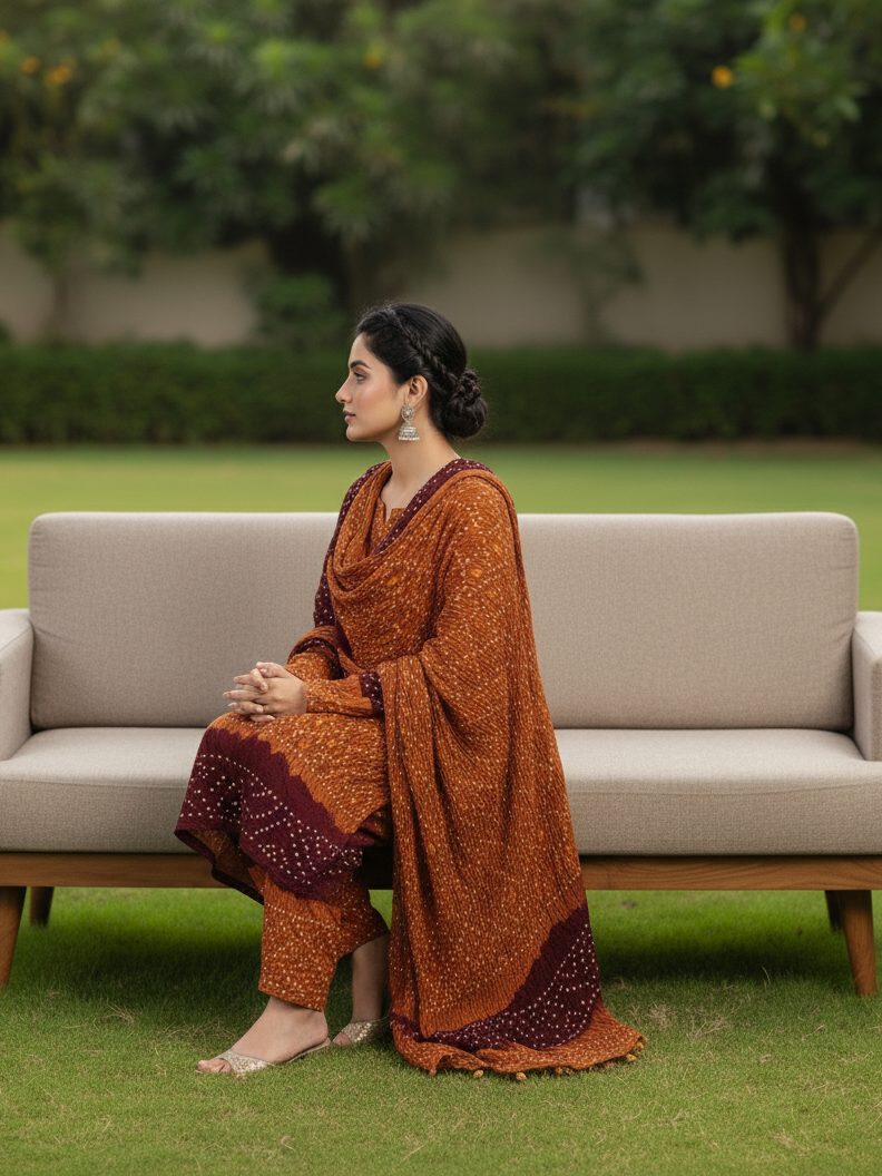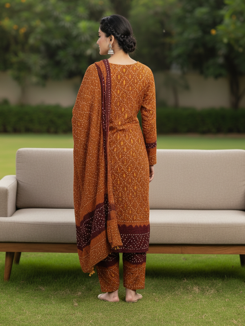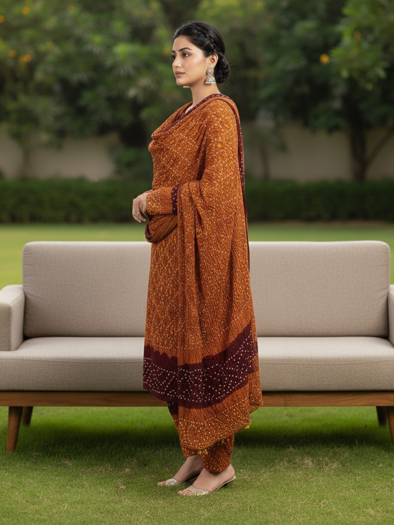 Maroon Mustard Chiffon 3PC Suit – Unstitched Premium Dress